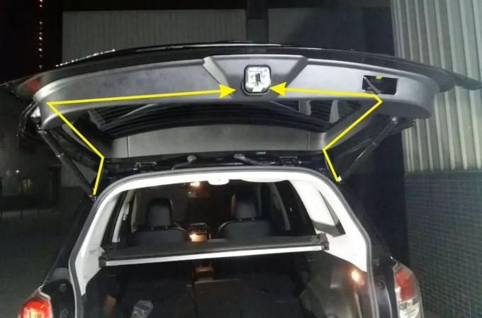 15. Usunąć płytkę szczeliny, otwory w górnej części płytki , zainstalować przełącznik sterowania klapą tylną