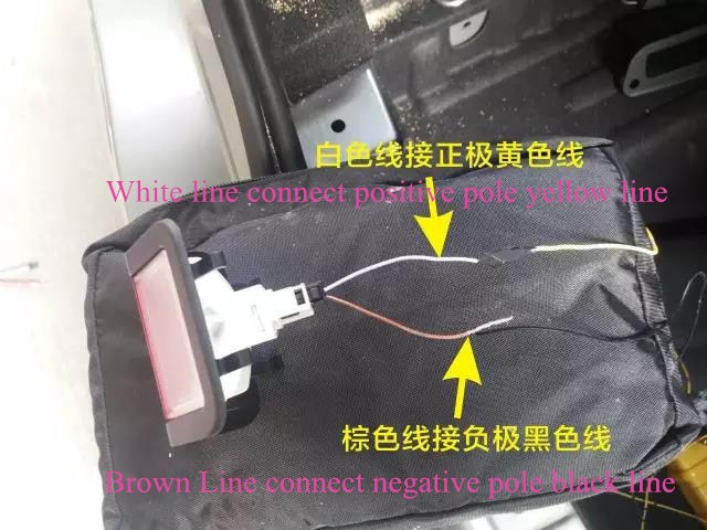15.Podłączyć oryginalną linię odblokowującą pojazdu i linię lokalną odpowiednio do linii odblokowującej i linii pozycji naszego zespołu przewodów przełącznika (kontynuacja jest bezpośrednio połączona z trójdrogowym gniazdem przejściowym dostarczonym przez naszą firmę, unikanie potrzeby przycinania).
