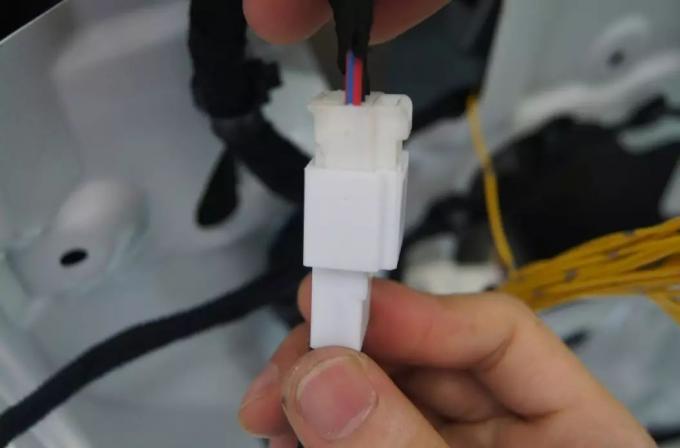 14. Wyciągnij wtyczkę oryginalnego samochodu i dok ze śrubą przycisku przełącznika drzwi tylnych