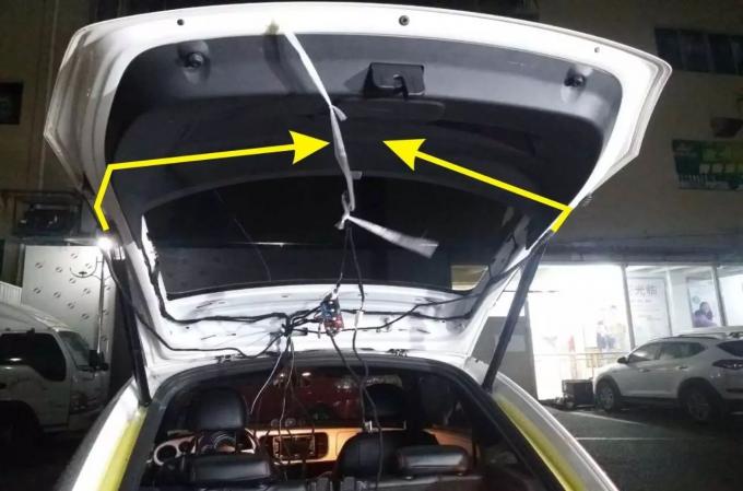 13. Zainstalować centralną skrzynkę kontrolną na pokrywie tylnego panelu tylnej klapy. Zamontowana z bandażem.